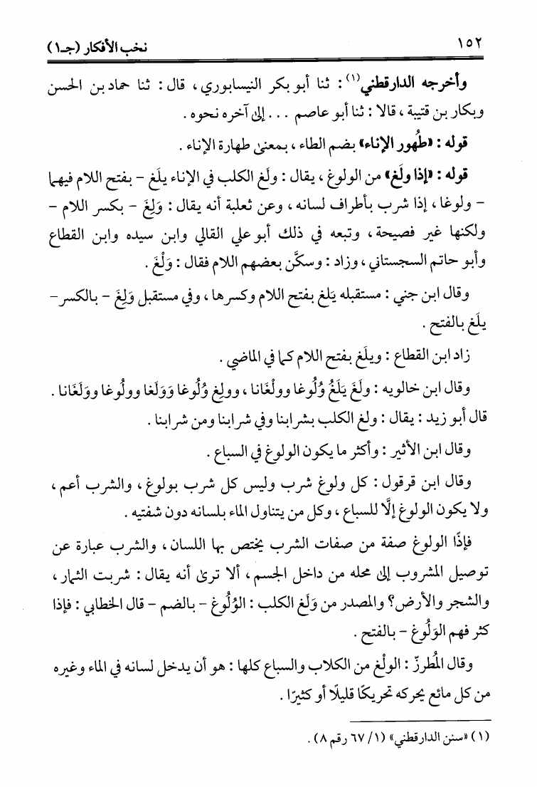 نام کتاب : نخب الأفكار في تنقيح مباني الأخبار في شرح معاني الآثار (ط. الأوقاف القطرية) نویسنده : محمود بن أحمد بن موسى بدر الدين العيني جلد : 1 صفحه : 152