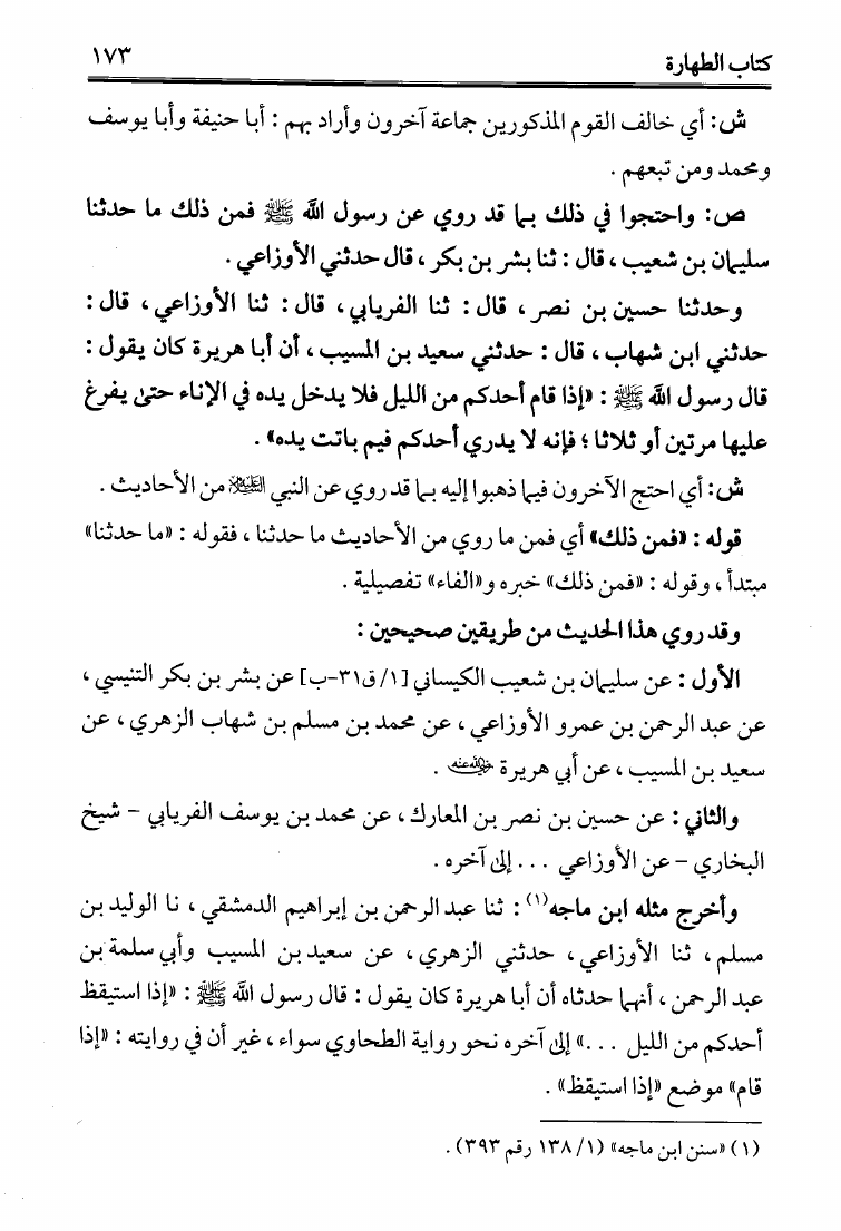 نام کتاب : نخب الأفكار في تنقيح مباني الأخبار في شرح معاني الآثار (ط. الأوقاف القطرية) نویسنده : محمود بن أحمد بن موسى بدر الدين العيني جلد : 1 صفحه : 173