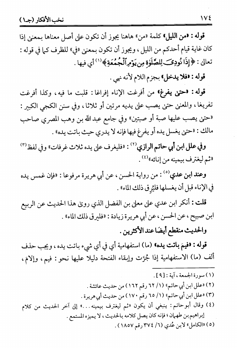 نام کتاب : نخب الأفكار في تنقيح مباني الأخبار في شرح معاني الآثار (ط. الأوقاف القطرية) نویسنده : محمود بن أحمد بن موسى بدر الدين العيني جلد : 1 صفحه : 174