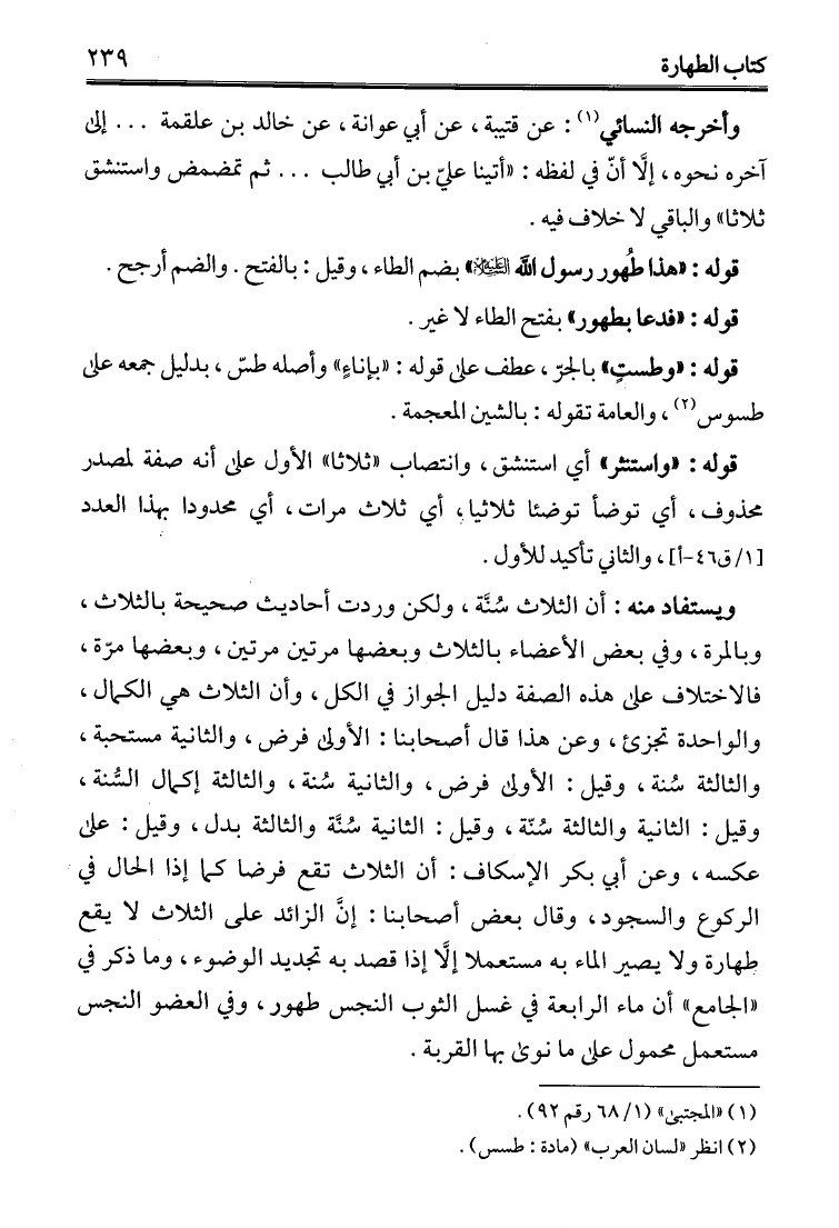 نام کتاب : نخب الأفكار في تنقيح مباني الأخبار في شرح معاني الآثار (ط. الأوقاف القطرية) نویسنده : محمود بن أحمد بن موسى بدر الدين العيني جلد : 1 صفحه : 239