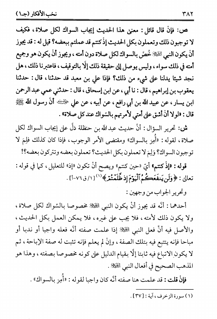 نام کتاب : نخب الأفكار في تنقيح مباني الأخبار في شرح معاني الآثار (ط. الأوقاف القطرية) نویسنده : محمود بن أحمد بن موسى بدر الدين العيني جلد : 1 صفحه : 382