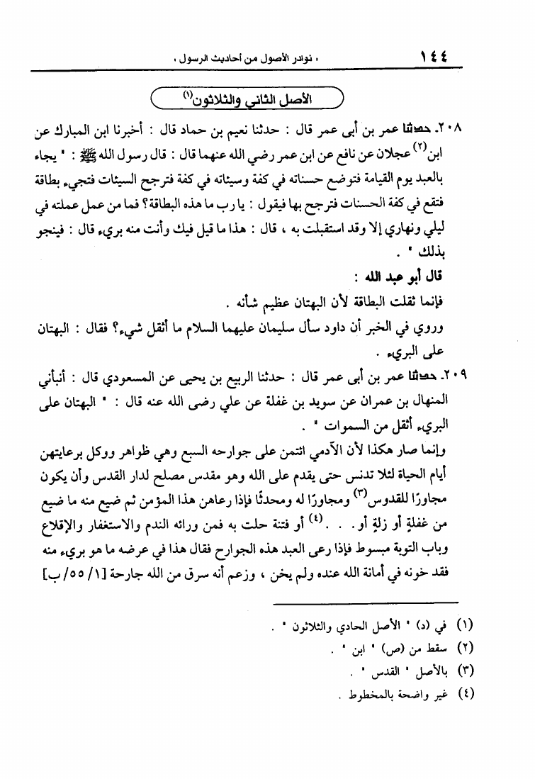 نوادر الأصول في معرفة أحاديث الرسول (النسخة المسندة)
