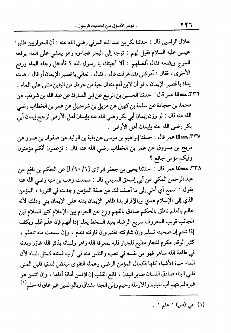 نوادر الأصول في معرفة أحاديث الرسول (النسخة المسندة)
