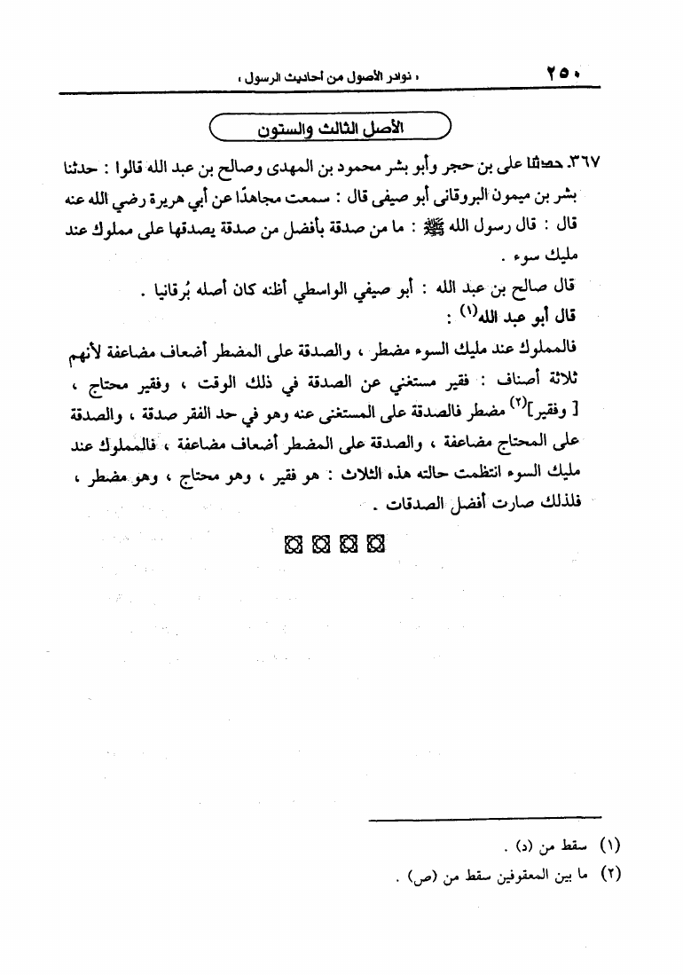 نوادر الأصول في معرفة أحاديث الرسول (النسخة المسندة)