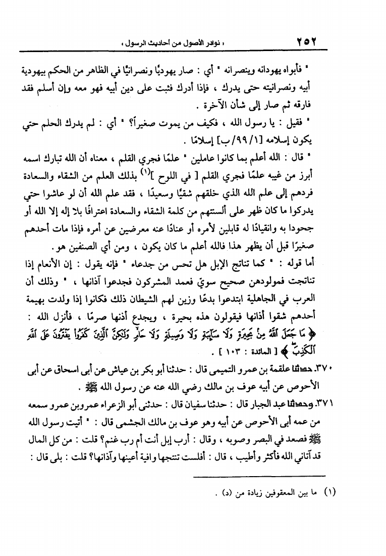 نوادر الأصول في معرفة أحاديث الرسول (النسخة المسندة)