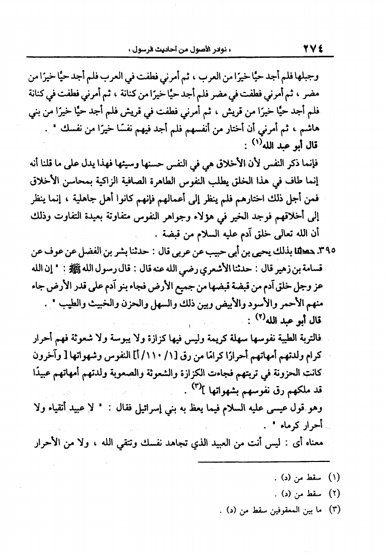 نوادر الأصول في معرفة أحاديث الرسول (النسخة المسندة)