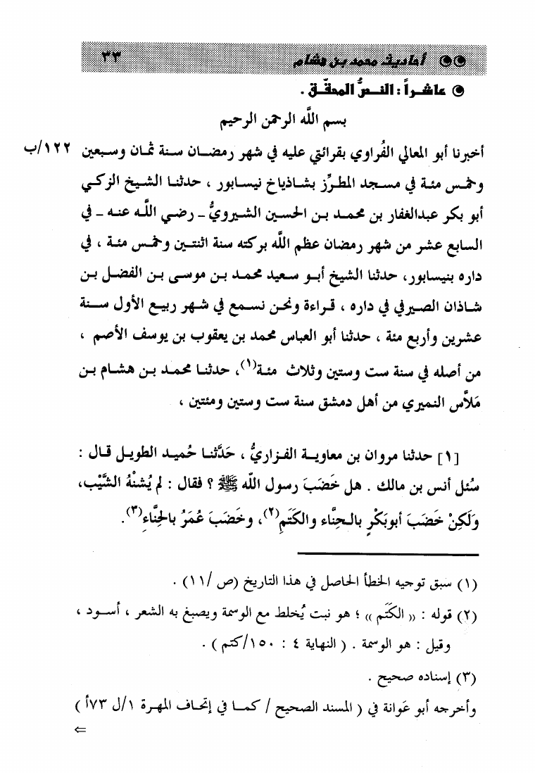 أحاديث محمد بن هشام بن ملاس النميري وهي سباعيات أبي المعالي الفراوي