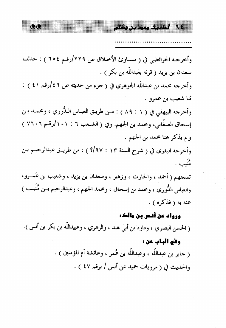 أحاديث محمد بن هشام بن ملاس النميري وهي سباعيات أبي المعالي الفراوي