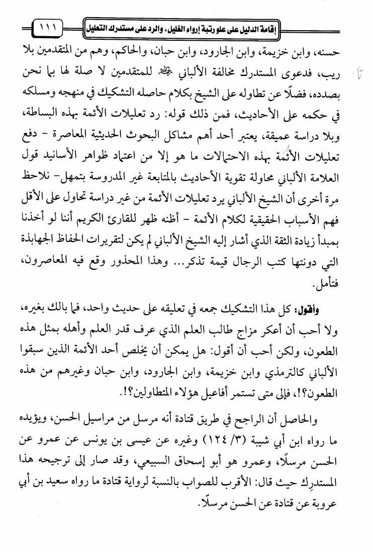 إقامة الدليل على علو رتبة إرواء الغليل والرد على مستدرك التعليل