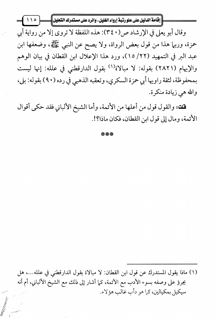 إقامة الدليل على علو رتبة إرواء الغليل والرد على مستدرك التعليل