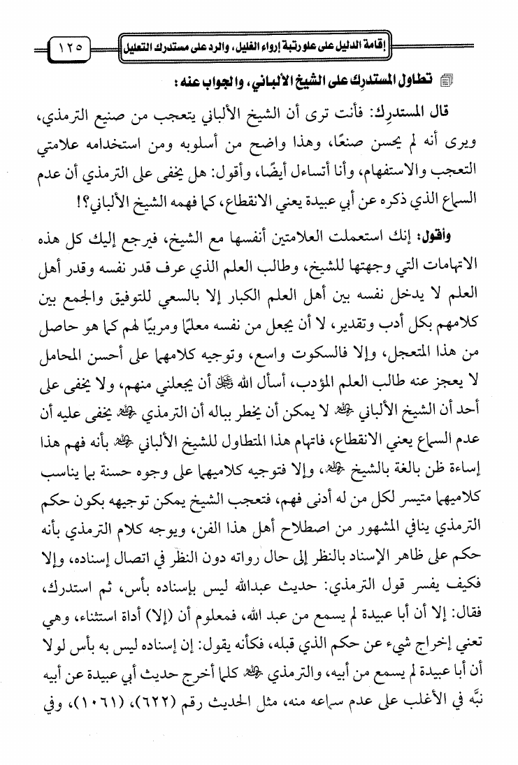 إقامة الدليل على علو رتبة إرواء الغليل والرد على مستدرك التعليل