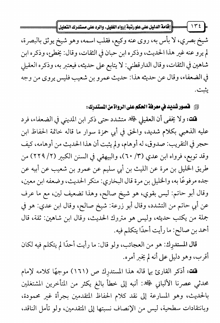 إقامة الدليل على علو رتبة إرواء الغليل والرد على مستدرك التعليل
