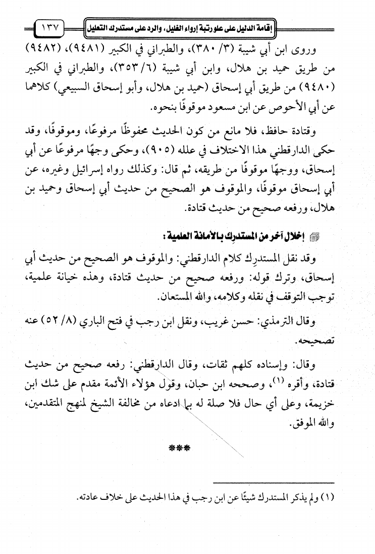 إقامة الدليل على علو رتبة إرواء الغليل والرد على مستدرك التعليل