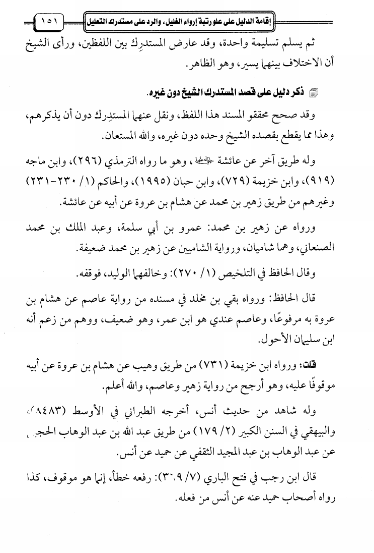 إقامة الدليل على علو رتبة إرواء الغليل والرد على مستدرك التعليل
