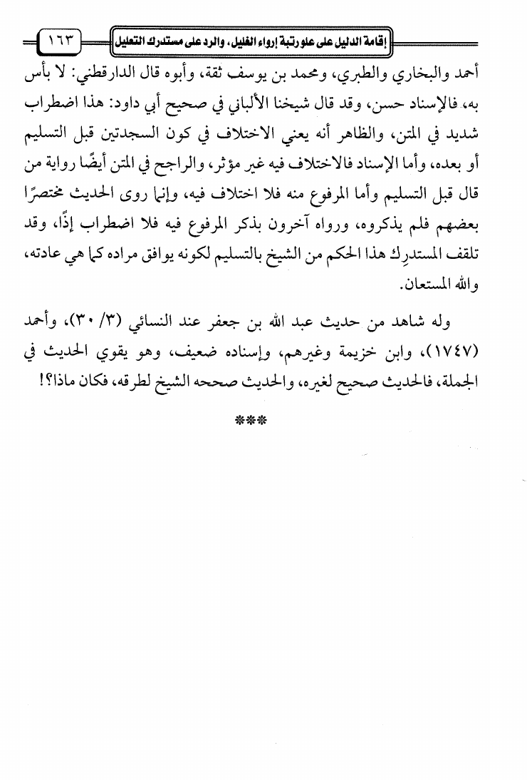إقامة الدليل على علو رتبة إرواء الغليل والرد على مستدرك التعليل