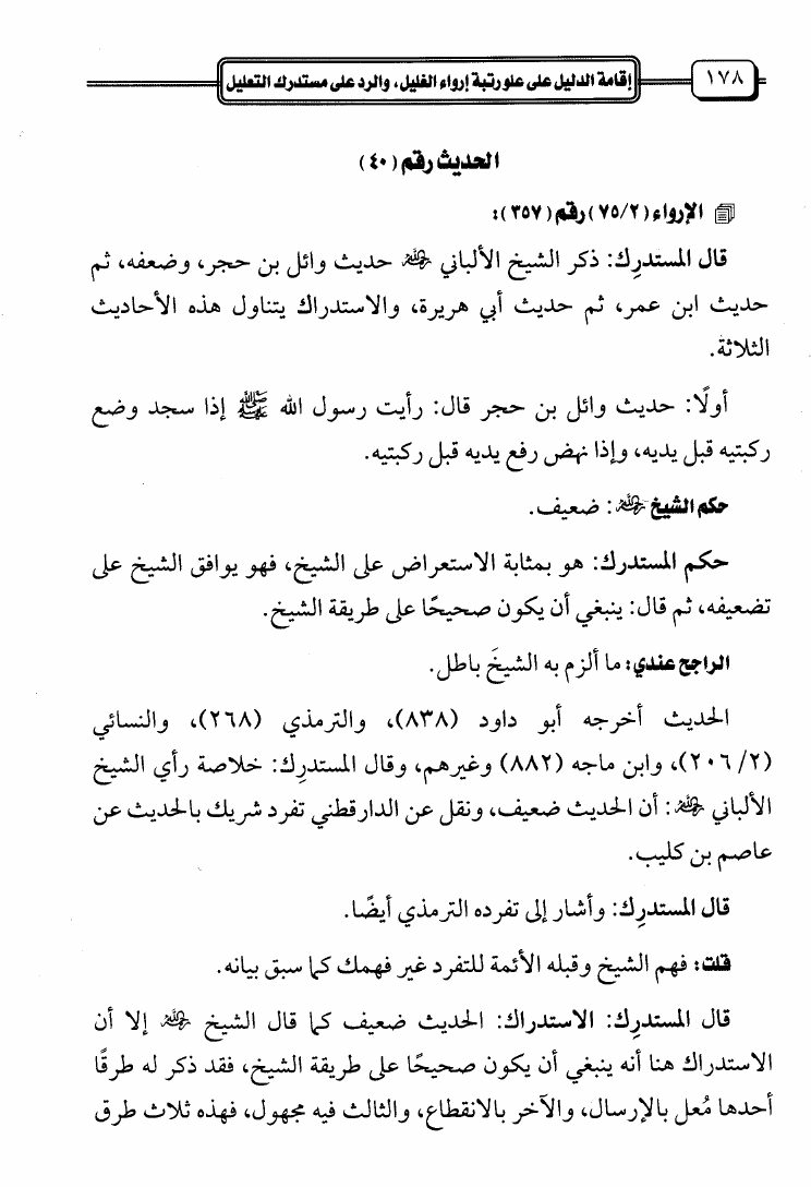 إقامة الدليل على علو رتبة إرواء الغليل والرد على مستدرك التعليل