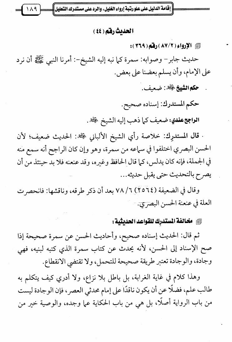 إقامة الدليل على علو رتبة إرواء الغليل والرد على مستدرك التعليل