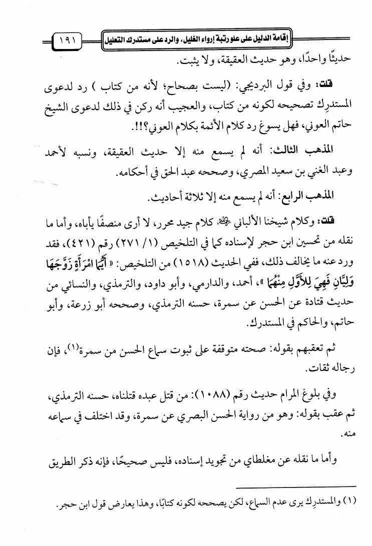 إقامة الدليل على علو رتبة إرواء الغليل والرد على مستدرك التعليل