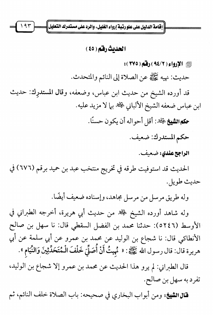إقامة الدليل على علو رتبة إرواء الغليل والرد على مستدرك التعليل