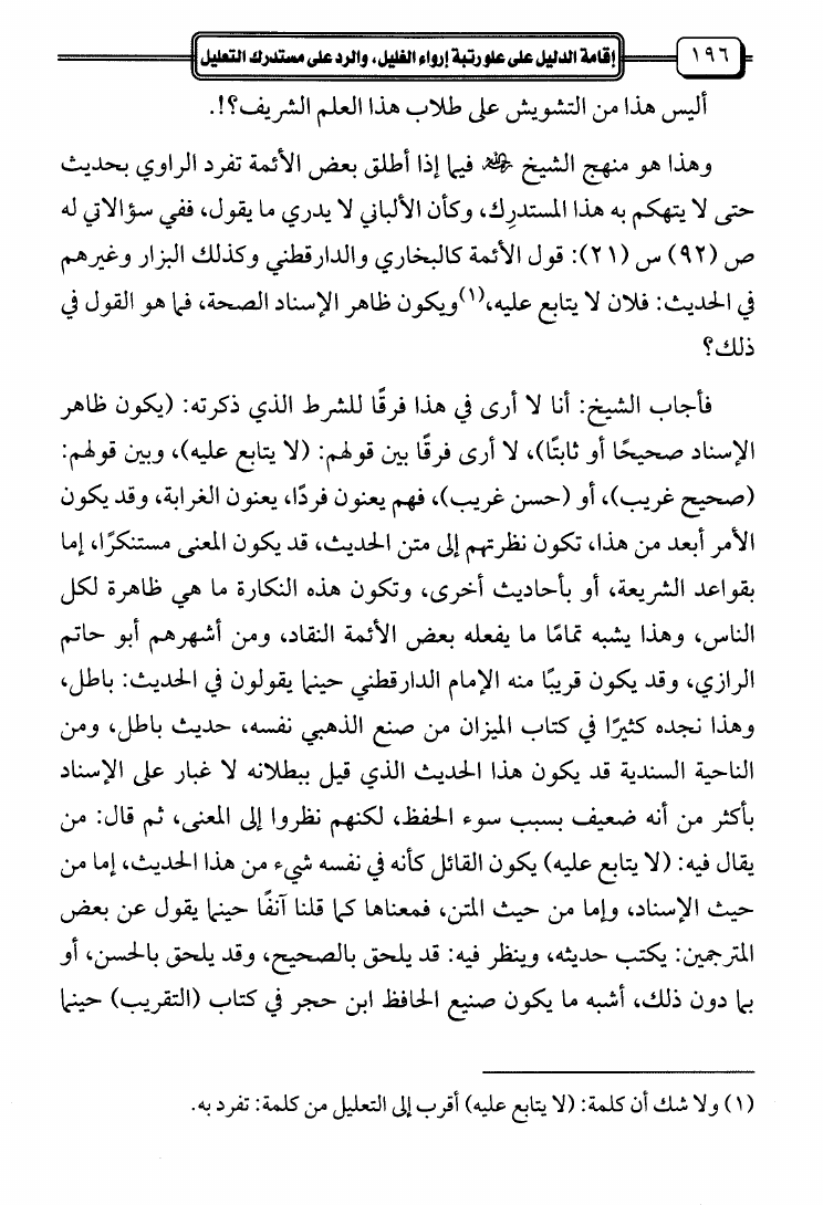 إقامة الدليل على علو رتبة إرواء الغليل والرد على مستدرك التعليل