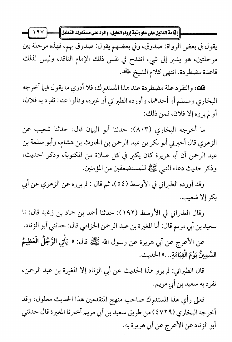 إقامة الدليل على علو رتبة إرواء الغليل والرد على مستدرك التعليل