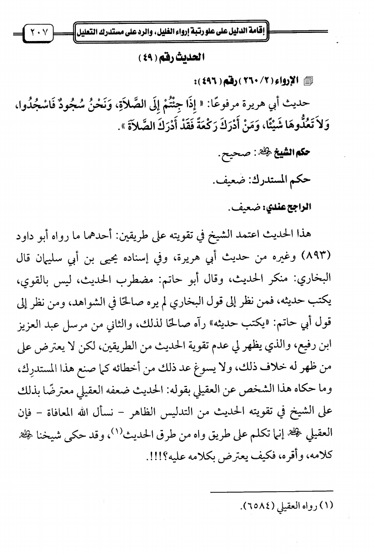 إقامة الدليل على علو رتبة إرواء الغليل والرد على مستدرك التعليل