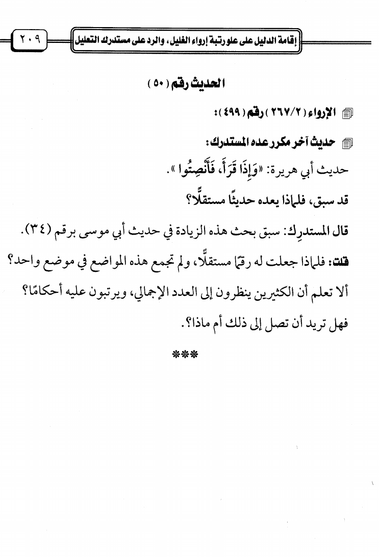 إقامة الدليل على علو رتبة إرواء الغليل والرد على مستدرك التعليل