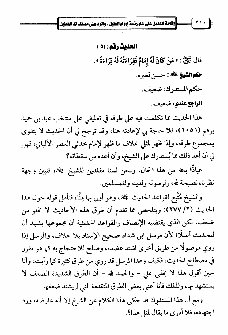 إقامة الدليل على علو رتبة إرواء الغليل والرد على مستدرك التعليل