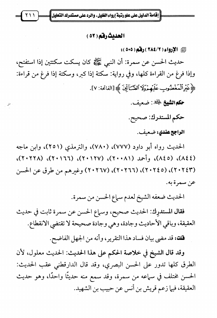 إقامة الدليل على علو رتبة إرواء الغليل والرد على مستدرك التعليل