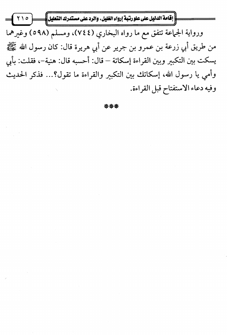 إقامة الدليل على علو رتبة إرواء الغليل والرد على مستدرك التعليل