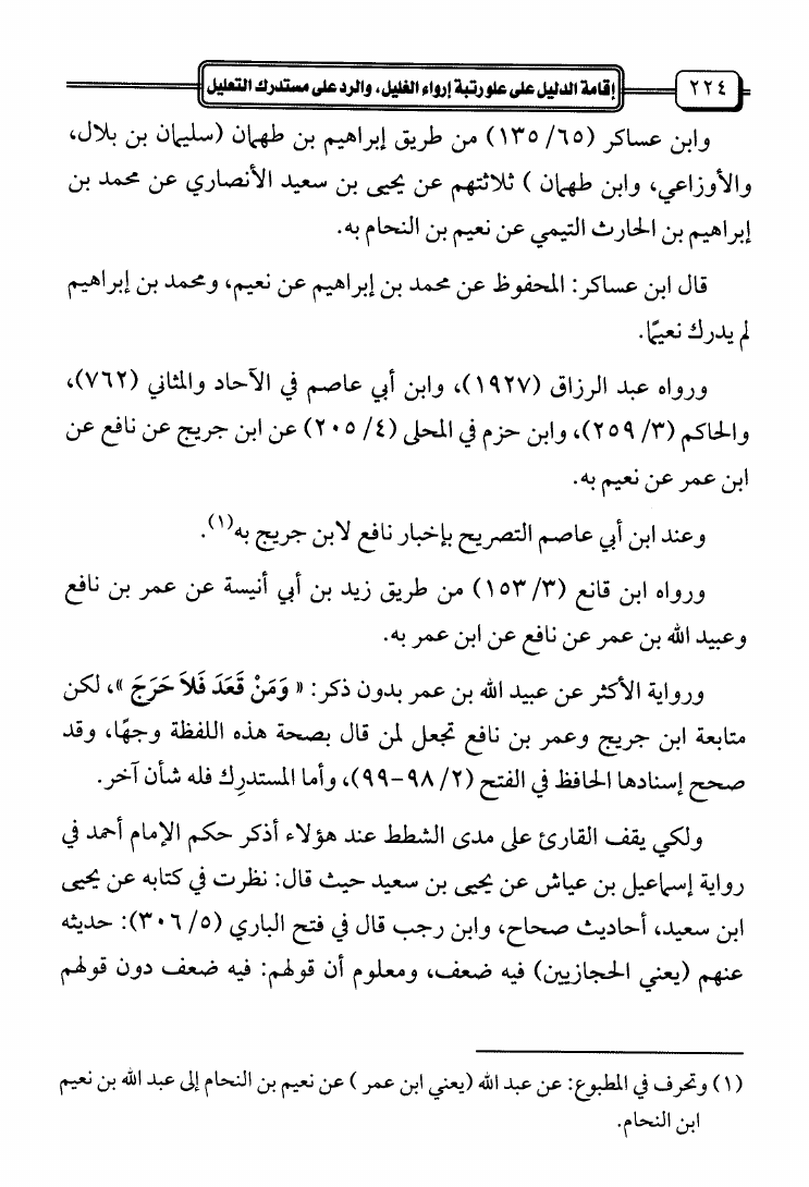 إقامة الدليل على علو رتبة إرواء الغليل والرد على مستدرك التعليل