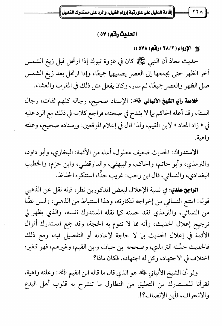 إقامة الدليل على علو رتبة إرواء الغليل والرد على مستدرك التعليل
