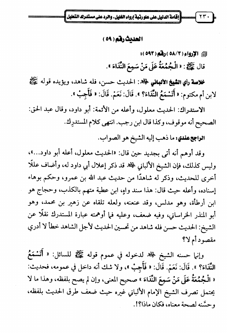 إقامة الدليل على علو رتبة إرواء الغليل والرد على مستدرك التعليل