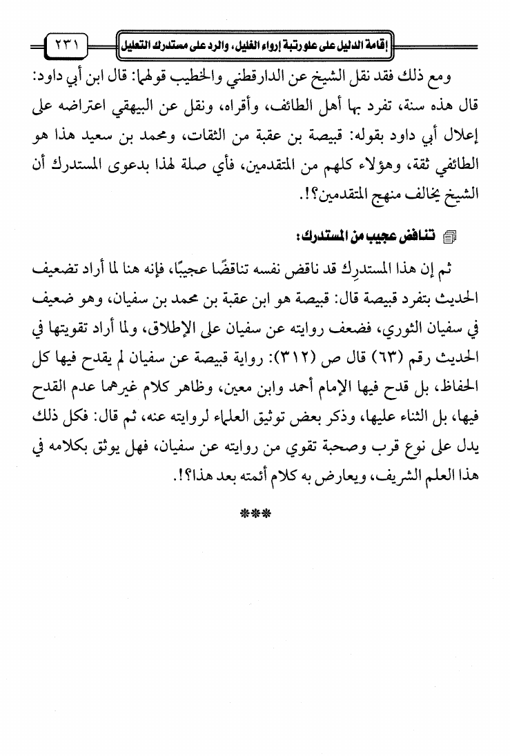 إقامة الدليل على علو رتبة إرواء الغليل والرد على مستدرك التعليل