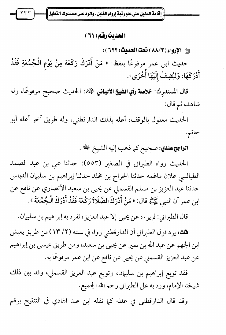 إقامة الدليل على علو رتبة إرواء الغليل والرد على مستدرك التعليل