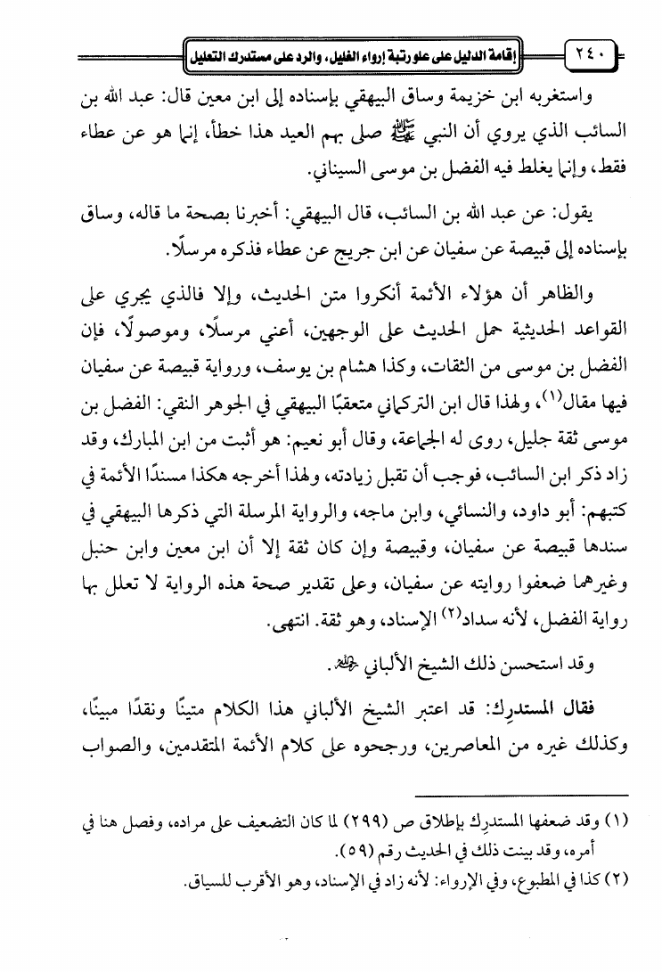 إقامة الدليل على علو رتبة إرواء الغليل والرد على مستدرك التعليل