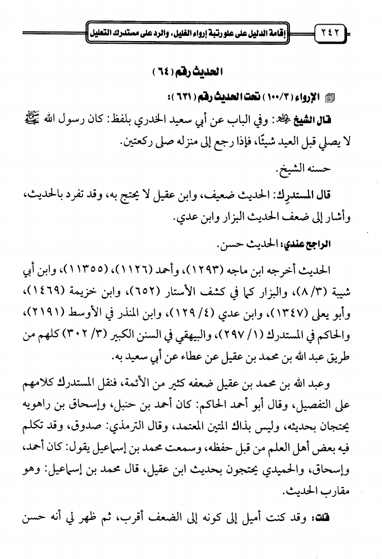 إقامة الدليل على علو رتبة إرواء الغليل والرد على مستدرك التعليل