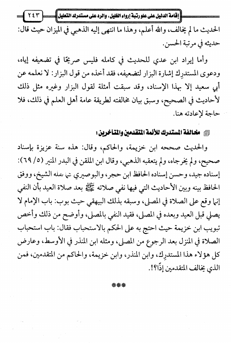 إقامة الدليل على علو رتبة إرواء الغليل والرد على مستدرك التعليل