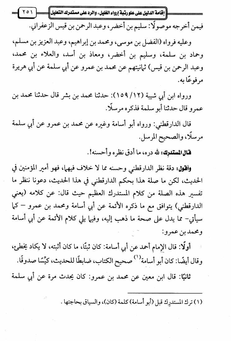 إقامة الدليل على علو رتبة إرواء الغليل والرد على مستدرك التعليل