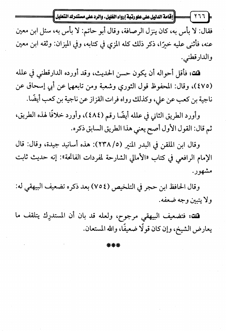 إقامة الدليل على علو رتبة إرواء الغليل والرد على مستدرك التعليل