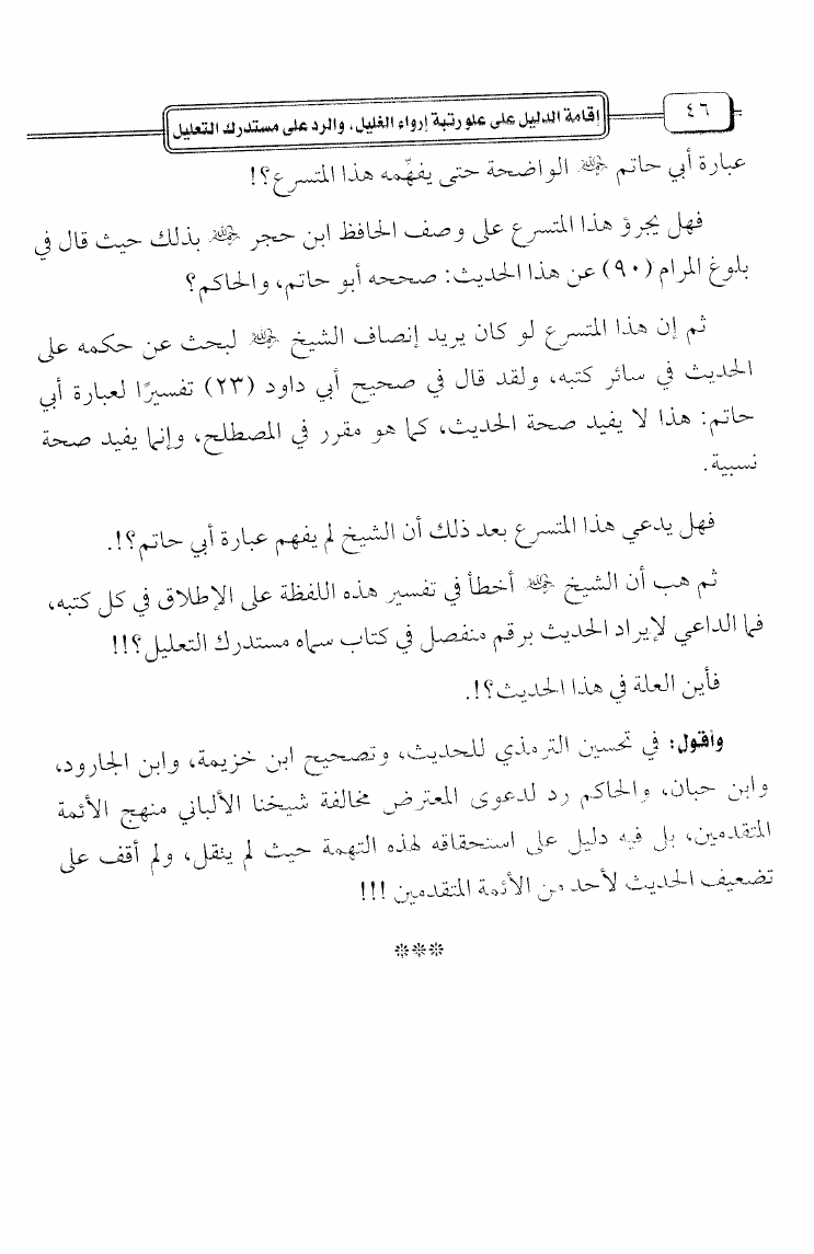إقامة الدليل على علو رتبة إرواء الغليل والرد على مستدرك التعليل