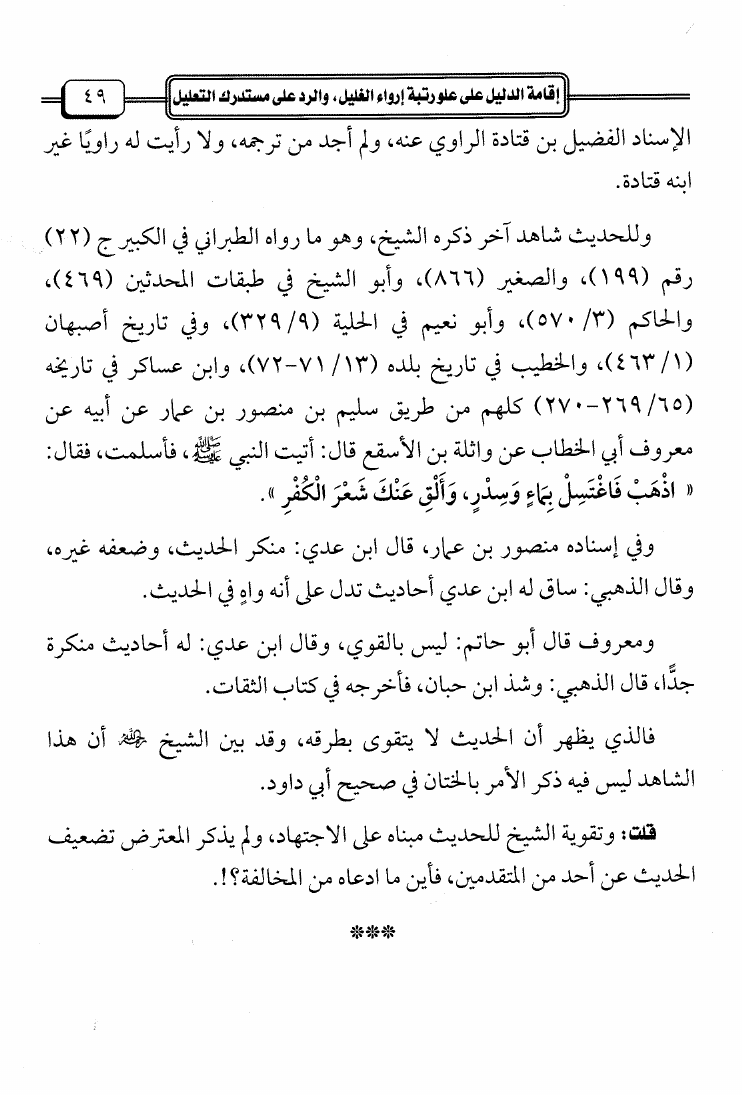 إقامة الدليل على علو رتبة إرواء الغليل والرد على مستدرك التعليل