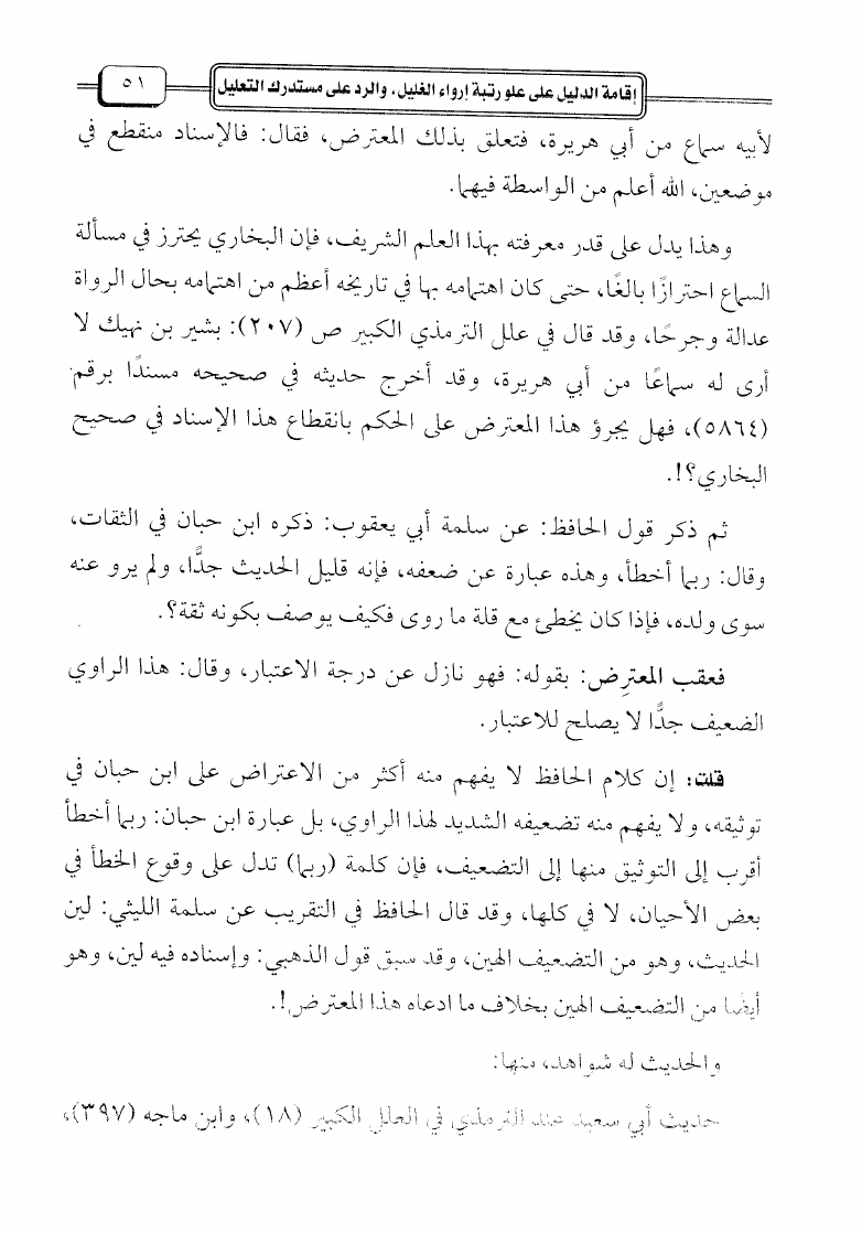 إقامة الدليل على علو رتبة إرواء الغليل والرد على مستدرك التعليل