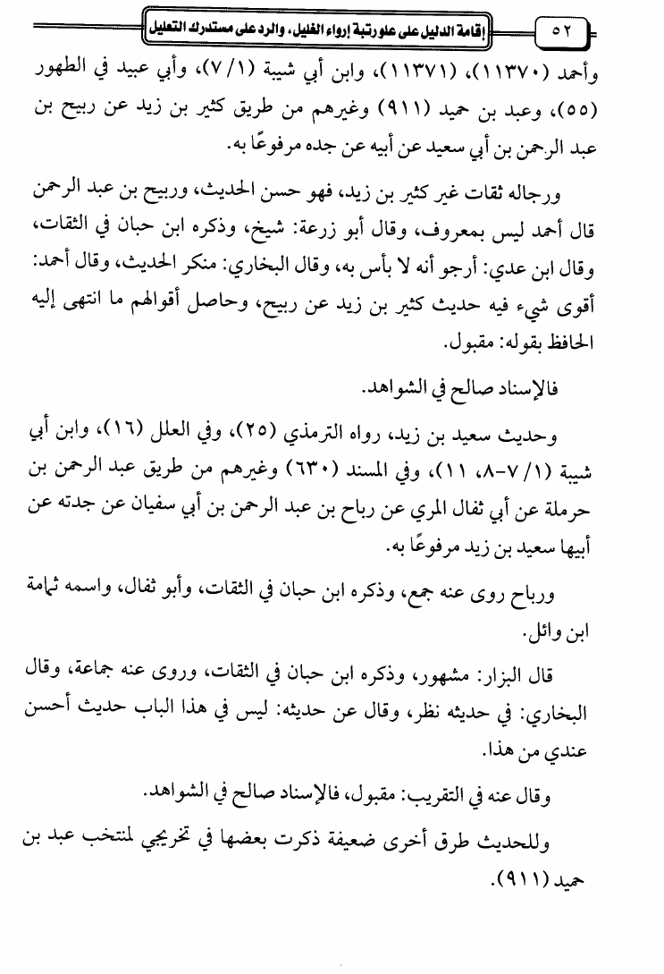 إقامة الدليل على علو رتبة إرواء الغليل والرد على مستدرك التعليل