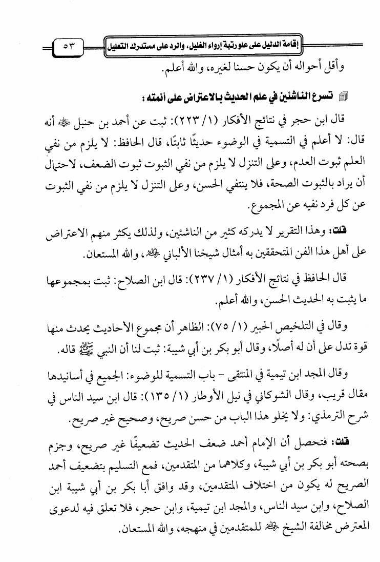 إقامة الدليل على علو رتبة إرواء الغليل والرد على مستدرك التعليل