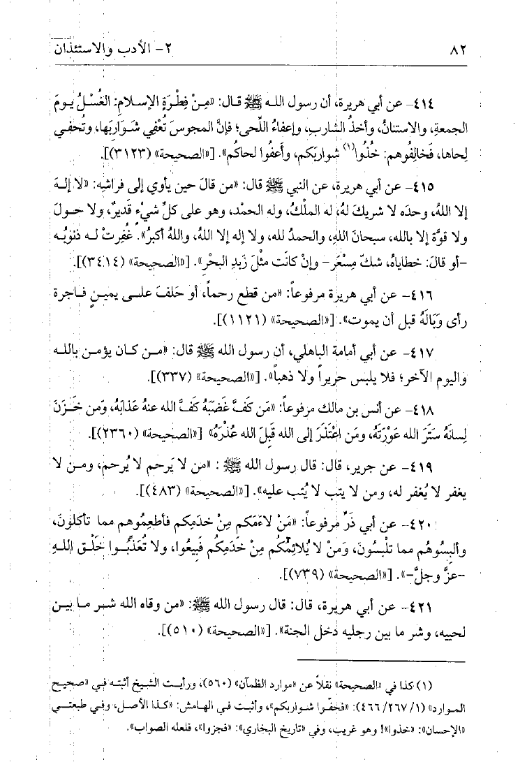 الأحاديث الصحيحة مرتبة على الأبواب الفقهية