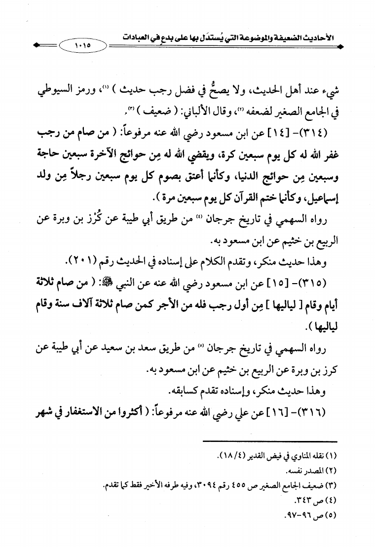 الأحاديث الضعيفة والموضوعة التي يستدل بها على بدع العبادات