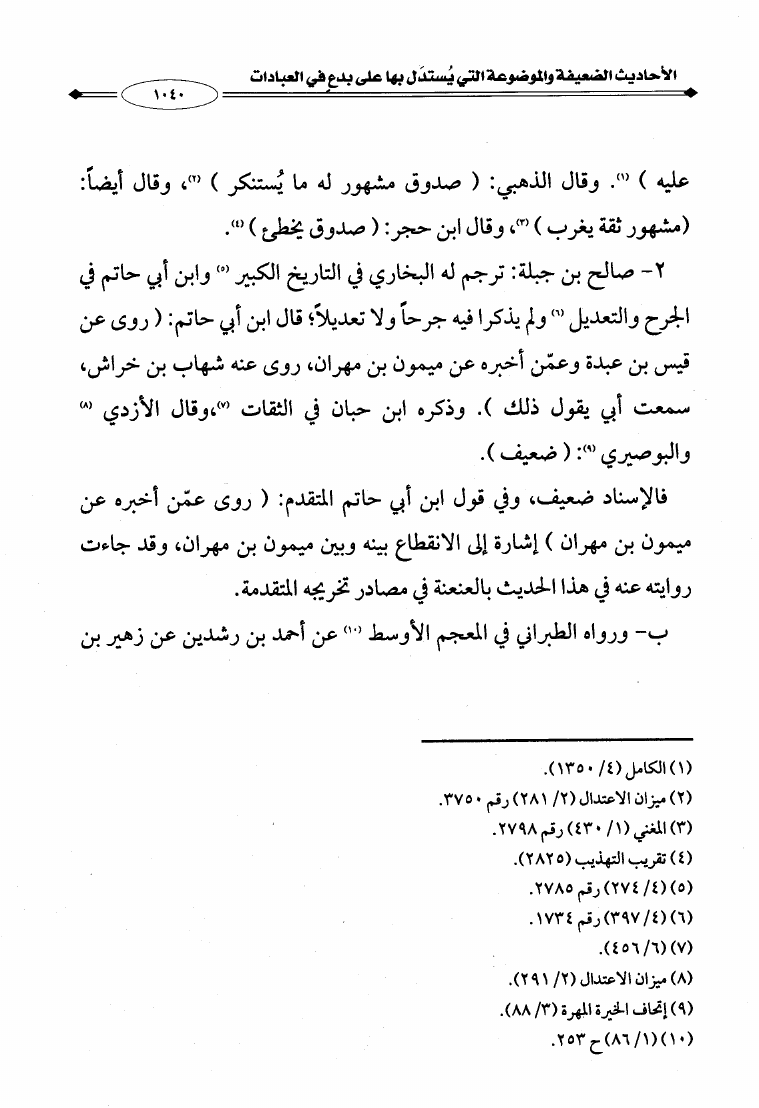 الأحاديث الضعيفة والموضوعة التي يستدل بها على بدع العبادات