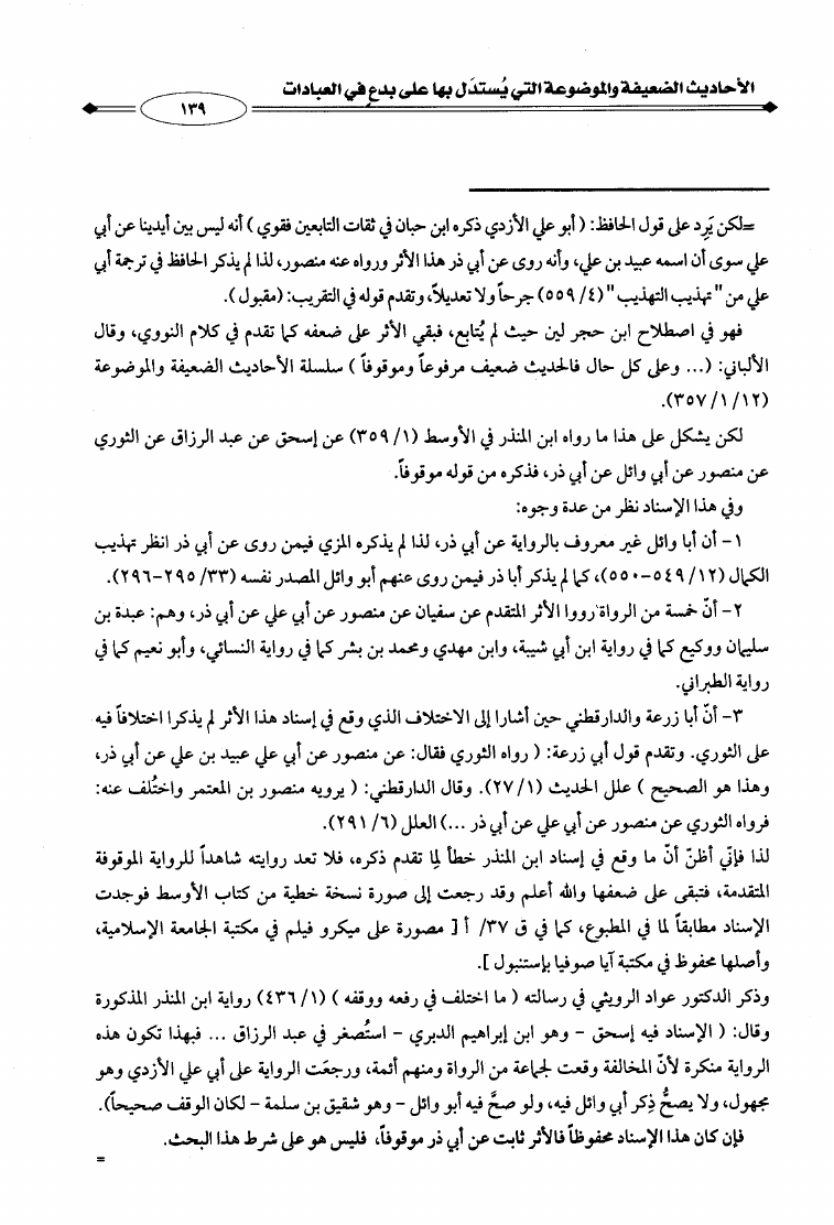 الأحاديث الضعيفة والموضوعة التي يستدل بها على بدع العبادات