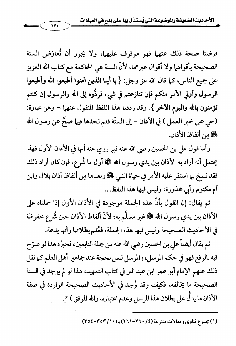 الأحاديث الضعيفة والموضوعة التي يستدل بها على بدع العبادات